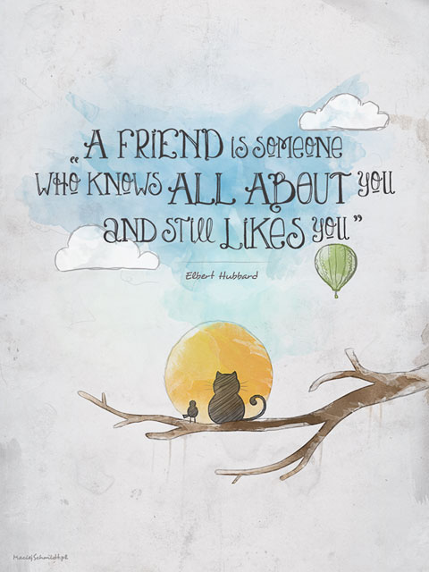 Illustration inspired by an Elbert Hubbard quote: "A friend is someone who knows everything about you and still likes you"